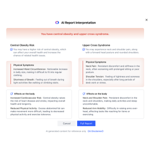Mély multimodális profilozás Szintetizálja a testösszetételt, funkcionális hiányosságok, és életmódbeli adatok (alvás, ülő idő) átfogó egészségügyi profil létrehozásához.