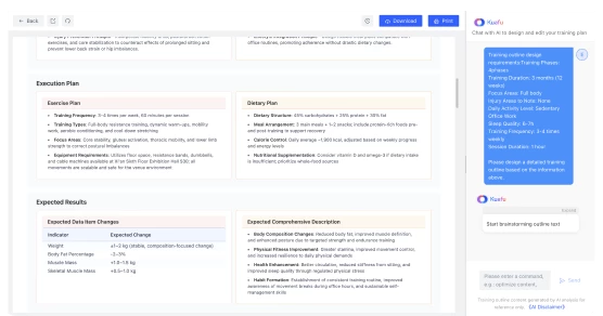 Képzett az adatokra vonatkozóan 15.8 millió testteszt, mélyen megérti az értékelési logikát és a képzési ciklusokat a sport -egészségügyi területen, A felhasználók számára pontos egészségügyi elemzési és képzési ajánlások nyújtása.